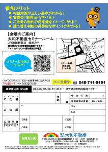①右記のサイトからお申込み(建て替え成功の秘訣セミナー お申込フォーム)